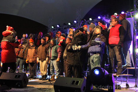 Can we sing outdoors at 30 below? Sure! Here we are singing at Opening Ceremonies of the Bon Soo Winter Carnival, Feb. 1 2013