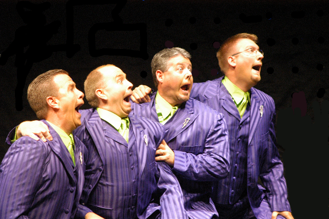 Sometimes we're in tuxes, sometimes we're in blue jeans and coveralls as Dairymen in a melodrama. This is from "Dire Days at the Dairy - or Udder Mayhem" - our April 2012 annual show.